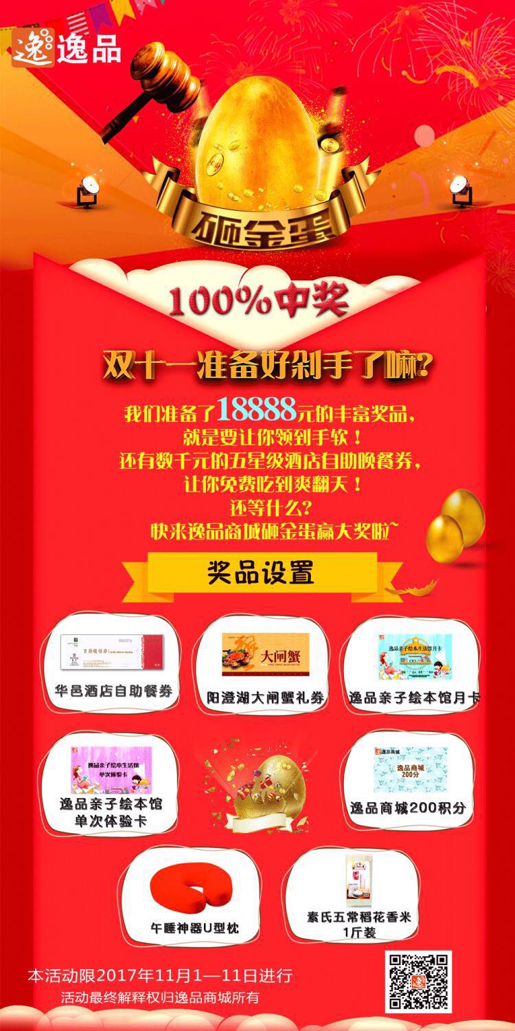 双十一感恩回馈,史上最低价,微信商城下单,消费满128元!即可参与砸金蛋活动!百分之百的中奖率,总价值18888万元的奖品等您来抢,一年仅一次!