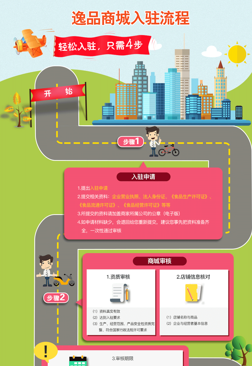 商家入驻提交的信息资料由逸品生活工作人员在收到完整材料后3—7个工作日内审核完毕。审核结果将及时通知申请人。