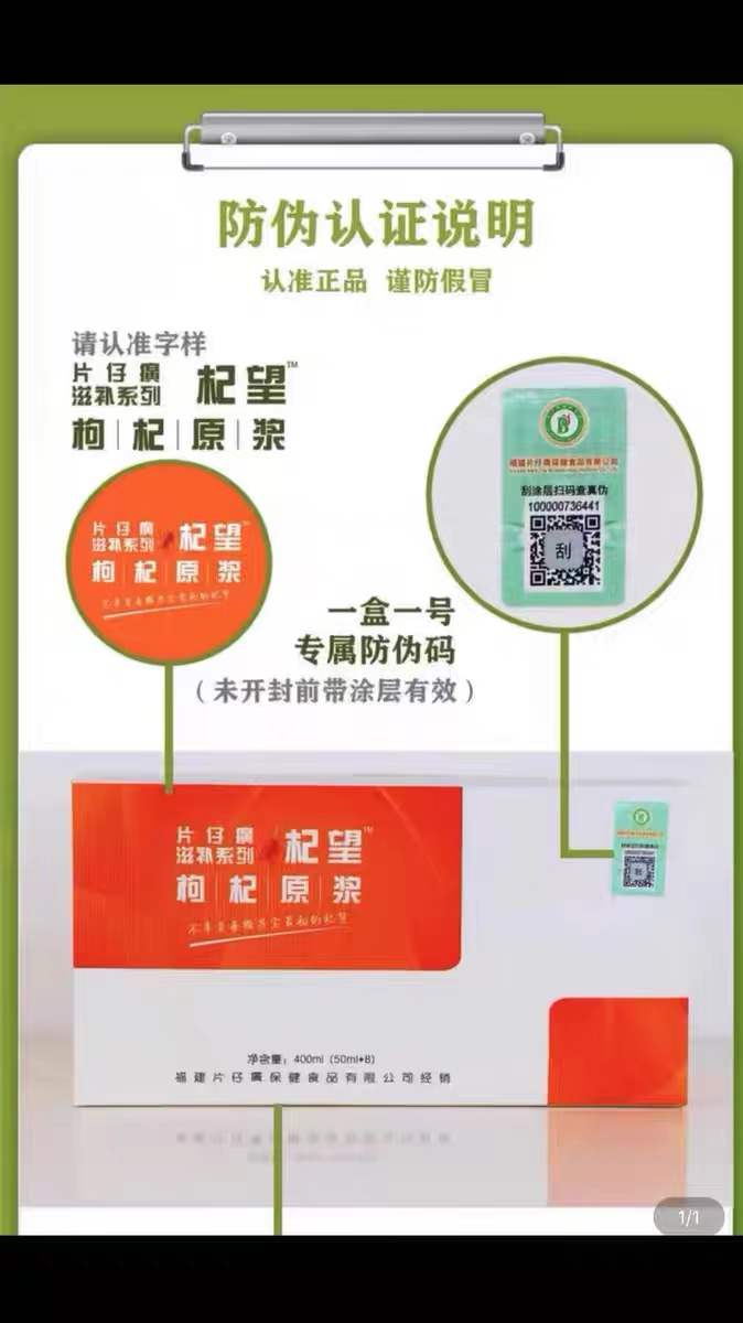 商品名称:片仔癀枸杞原浆 官方正品 宁夏中宁枸杞 不加水